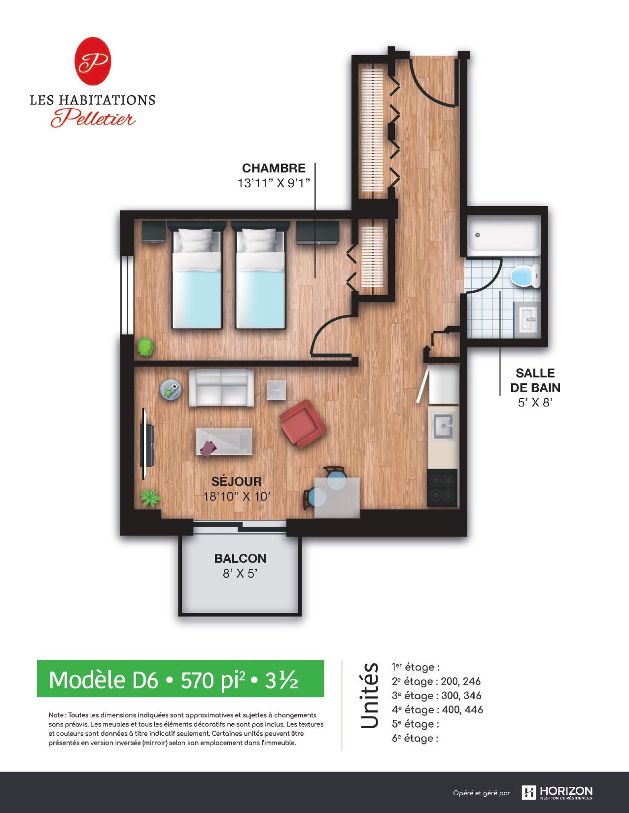 Designed especially for you, our studios and one-bedroom apartments offer a variety of layouts designed with your comfort in mind. Here are two sample plans; download them all to find the one that suits you best!